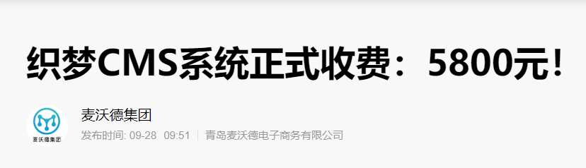 织梦程序官方于2021年9月26日宣布,织梦程序以后将开始授权收费。如果要使用织梦程序 ,就必须先付费,得到授权后才能使用。并且收费价格还比较高,5800元。