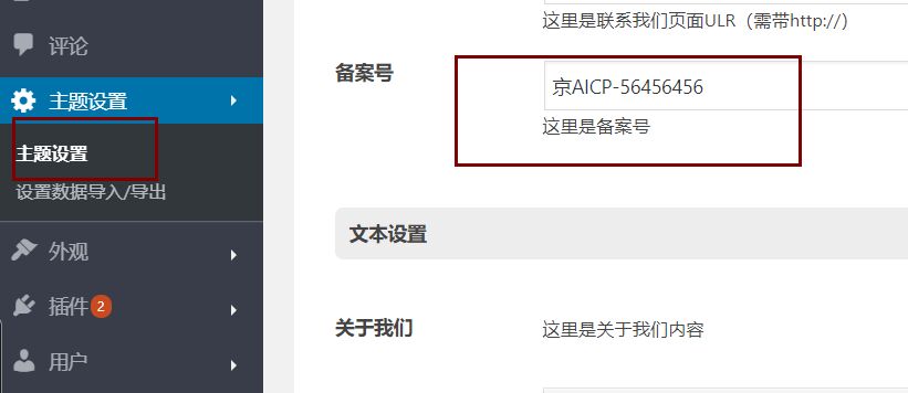 位置在于后台-主题设置-ICP备案号。只需要将自己网站的备案号填写进去即可。