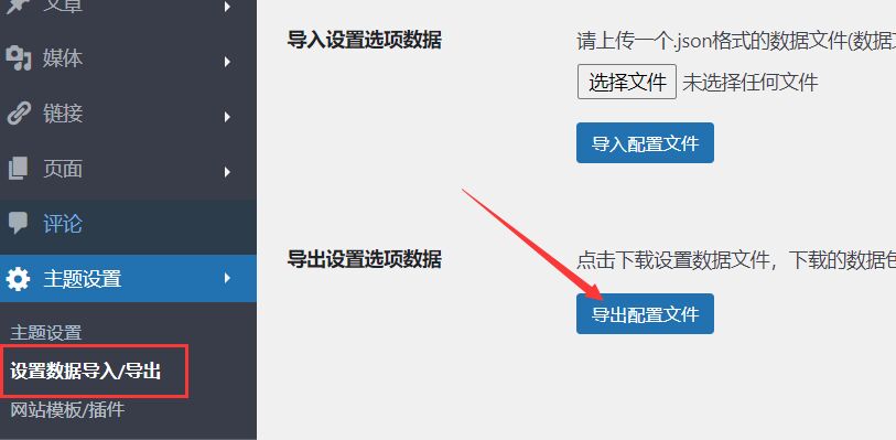 第一步:进入老域名网站后台,导出主题配置数据;(这一步很重要)