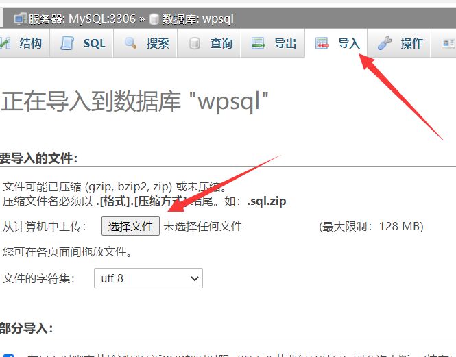 第五步:进入新主机的数据库管理后台,导入下载下来的数据库文件;