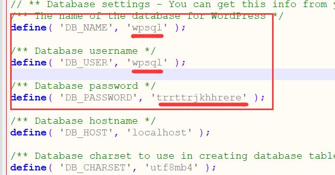 修改里面的数据库配置信息,更换成自己新主机的数据库信息;