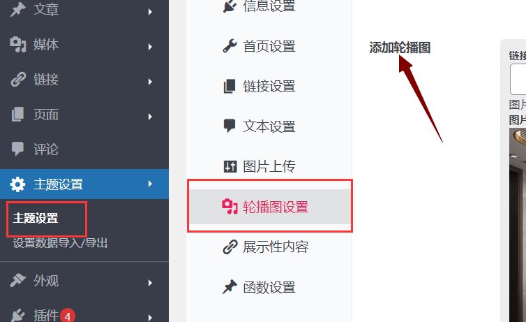 WordPress模板怎么更换轮播图 发布:WP模板阁 更新日期:2025-11-07类型:wordpress教程 浏览:3,307 次 大多数网站首页都会有轮播图,WP模板阁的网站模板也不例外。下面介绍一下安装了WP模板阁的WordPress网站怎么更换轮播图的步骤。 方法/步骤 第一步:登录自己的网站管理后台; 第二步:点击后台左侧菜单里的【主题设置】,找到里面的轮播图;如下图: 第三步:点击添加轮播图,上传自己电脑里的图片,这样就可以完成更换网站轮播图了。 相关WP模板 (自适应手机)响应式照明灯饰电器类网站WordPress模板下载 绿色在线教育平台网站自适应WordPress模板(带手机版) 蓝色大宗商品期货投资宣传页面WordPress模板(含手机站) 恒温培养箱恒湿箱WordPress模板 自适应红酒葡萄酒食品饮料生鲜茶酒洋酒网站WordPress主题 高端大气响应式办公文教蓝色文教用品WordPress网站主题 新闻博客军事资讯头条网WordPress模板(含手机站) 大气在线度假酒店预订网站WordPress模板(含手机网站) 女性健康资讯门户网站WordPress模板(带手机版) 蓝色智能云服务器租用网站WordPress模板(含手机网站)